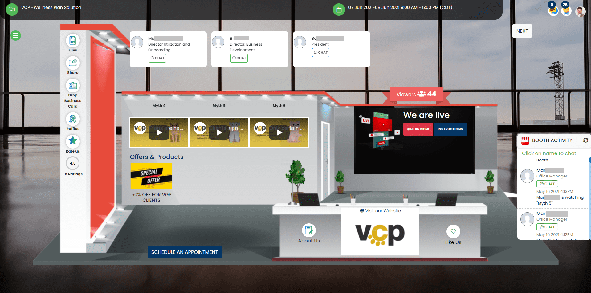 Showcase your premium sponsors in multiple locations, including the main ticketing home page, agenda, detailed exhibitor page with 10+ elements of engagement for attendees, check-in location, virtual lobby, networking room, and more. You can better retain sponsors with our sponsor-centric experience.